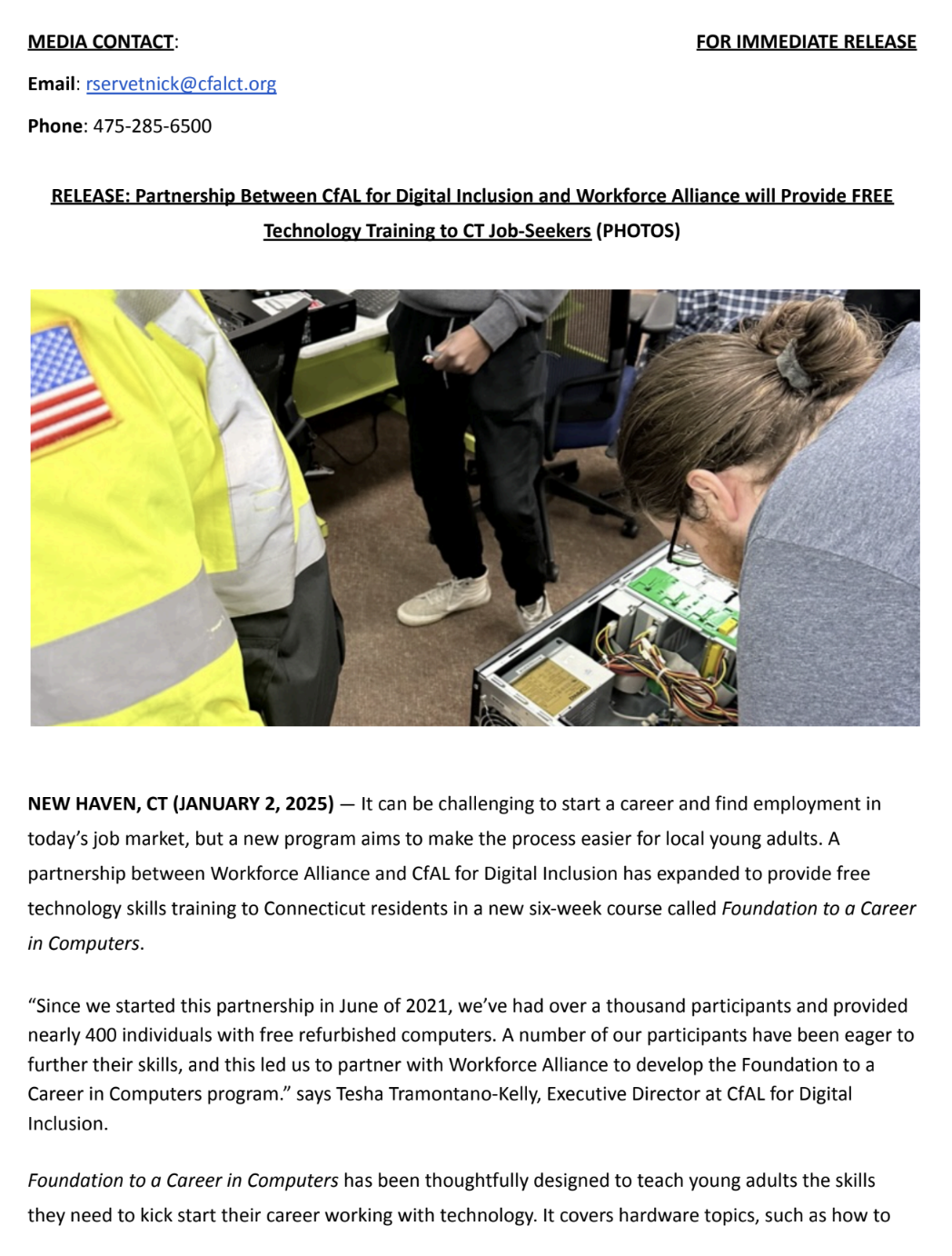 For press and media inquiries, or to interview or feature CfAL for Digital Inclusion in your media content, contact our marketing director, Rose.